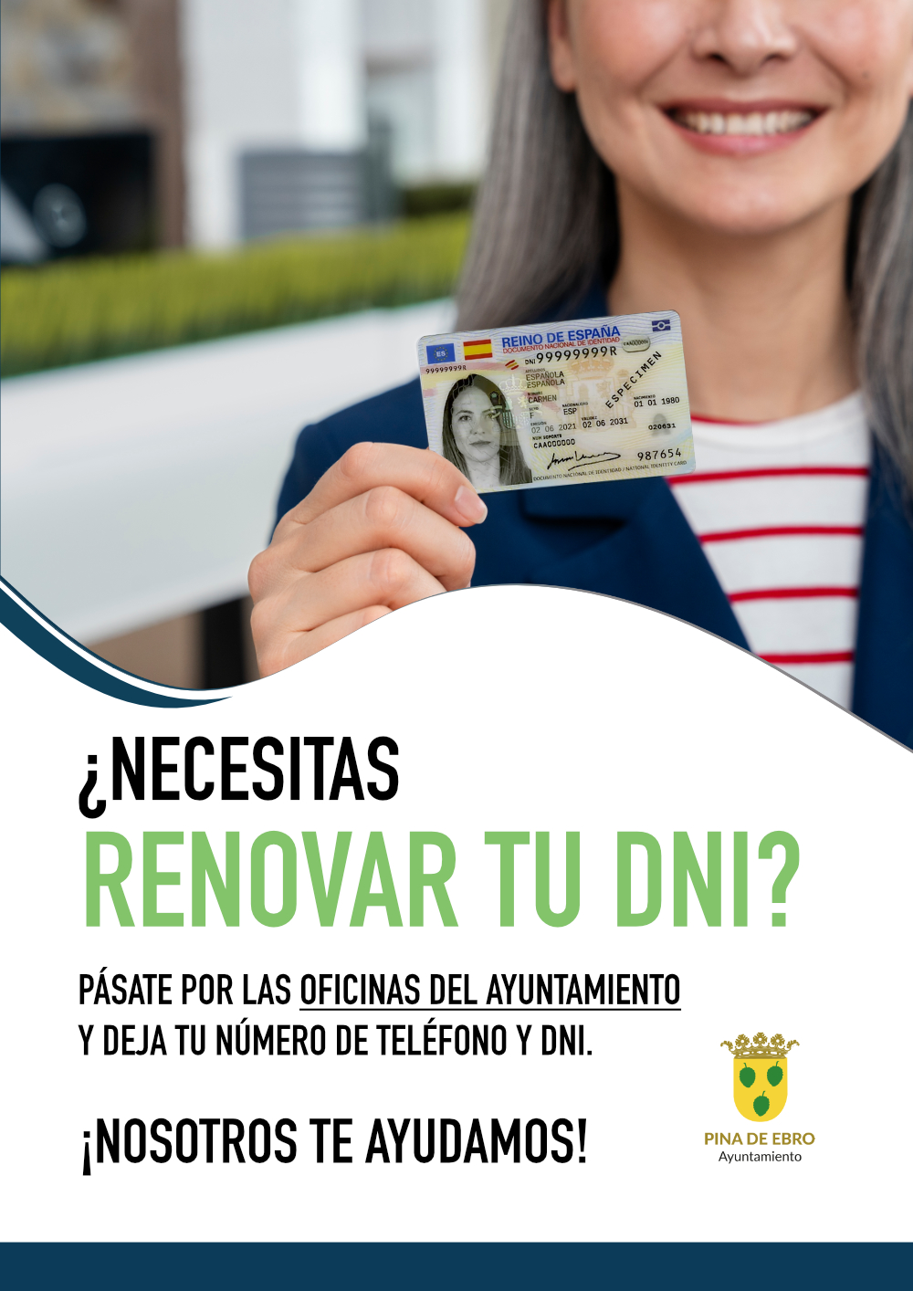 Si te va a caducar el DNI en próximas fechas, el Ayuntamiento de Pina de Ebro va a disponer una unidad de la Policía para no tener que realizar traslados.