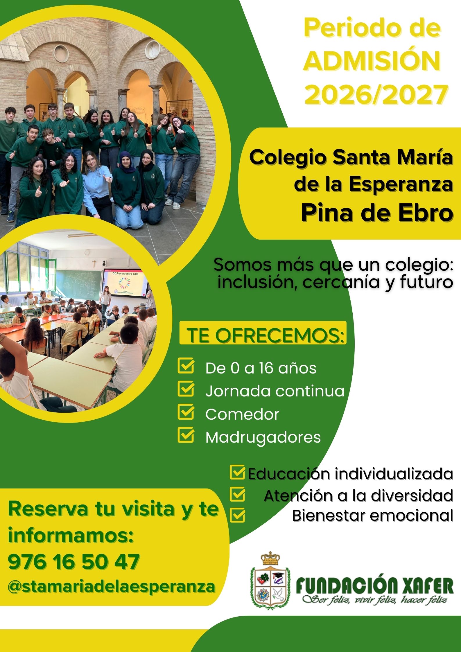 Desde el colegio Santa Maria de la Esperanza, en Pina de Ebro, os invitamos a conocer nuestro centro a futuras familias.